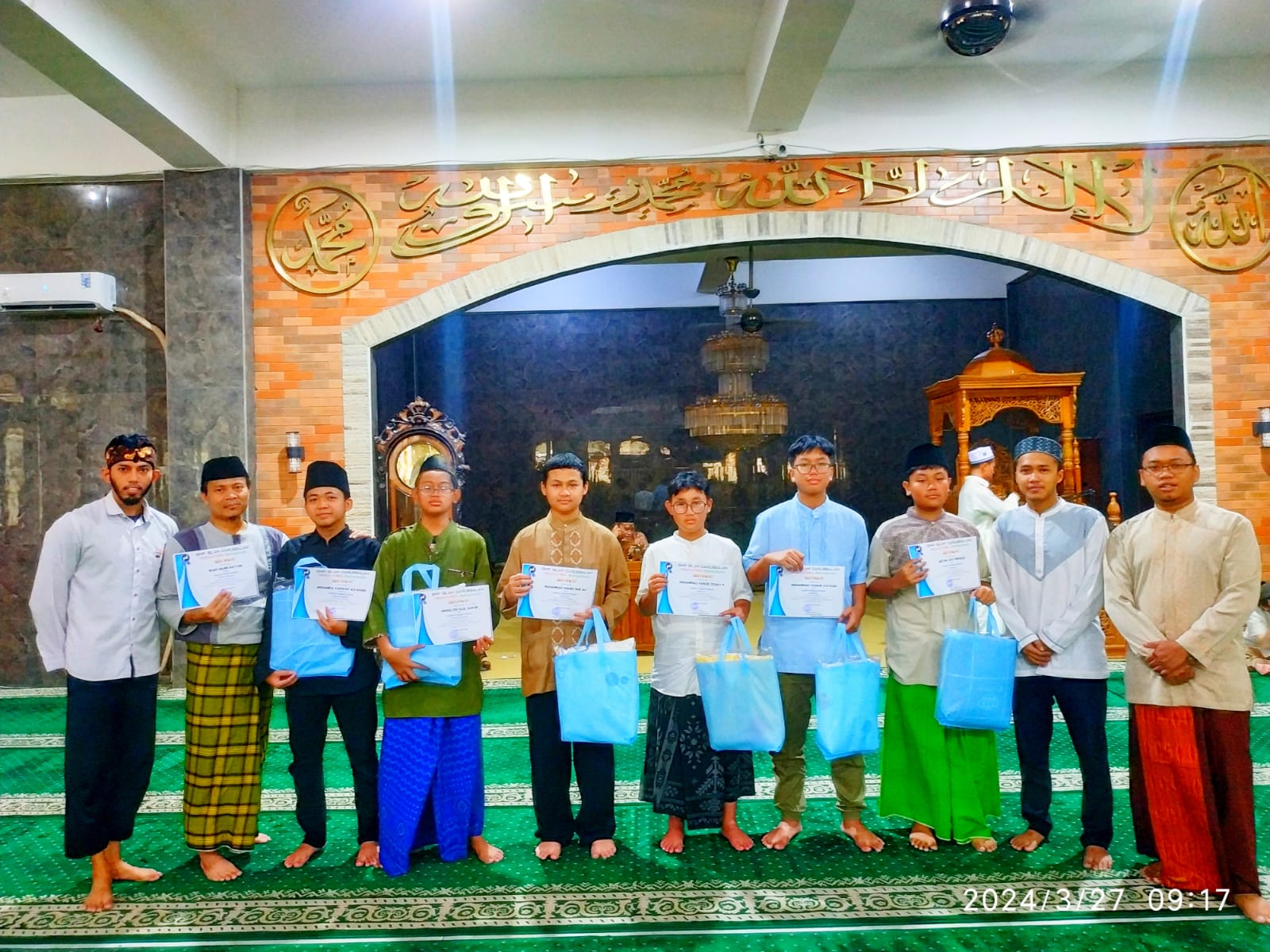 Dokumentasi peserta terbaik kelas 9 Quran Camp 31-2 Nov 2025